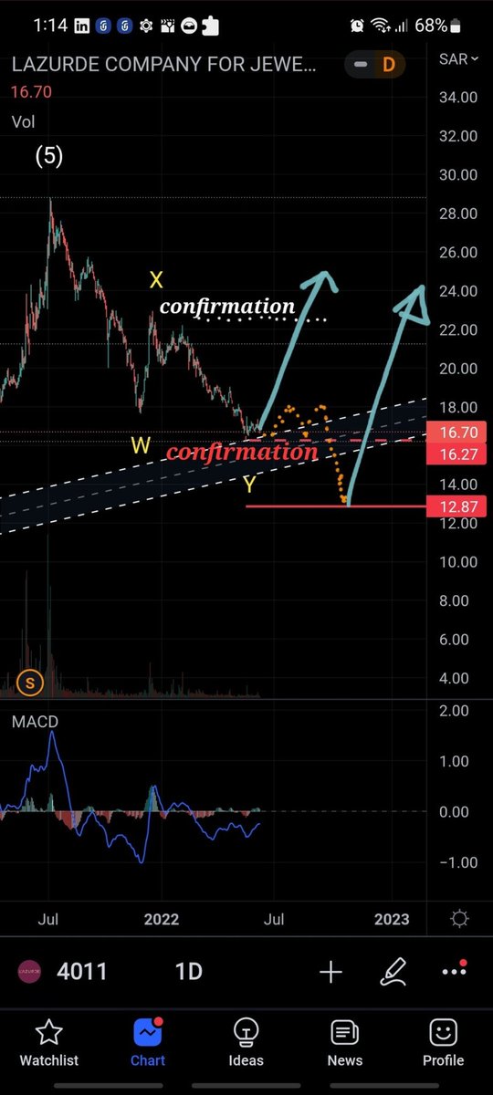 الاحتمال الاول (الافضل والاضعف) : انه ارتد من عند 16.27 ريال لكن ضعف الكميات اضعف هذا الاحتمال ... تأكيده بإختراق 22.15 ريال