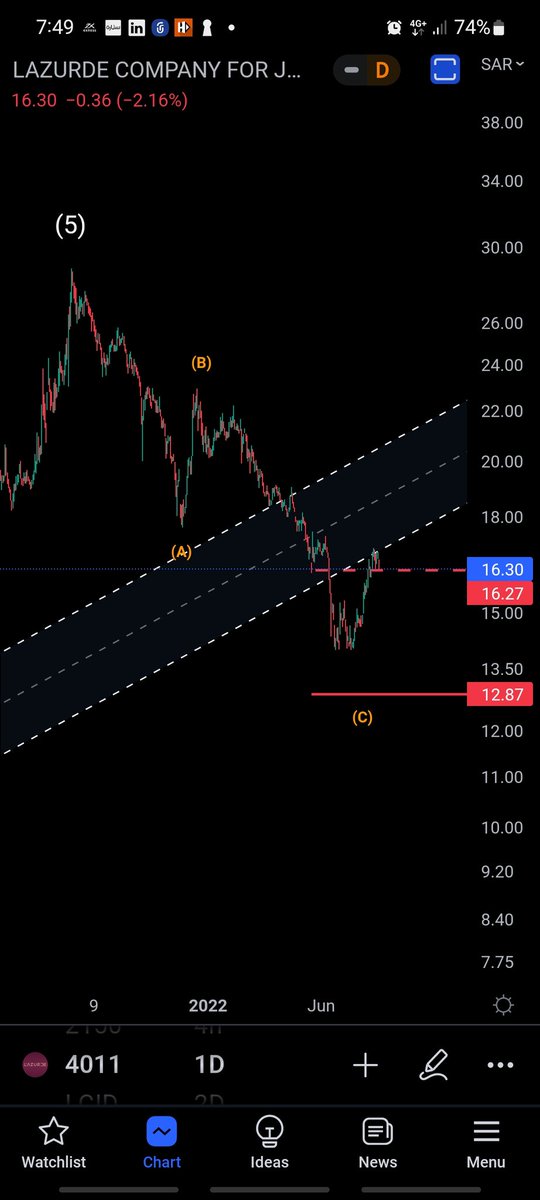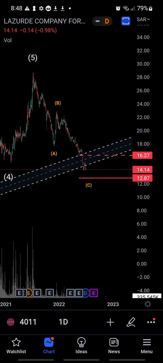 الاحتمال الثاني (الاسوأ والأقوى) : ارتداد من عند 12.87 ريال
