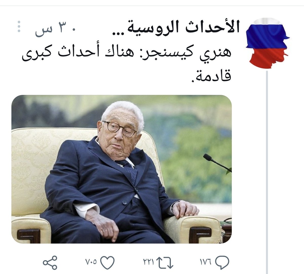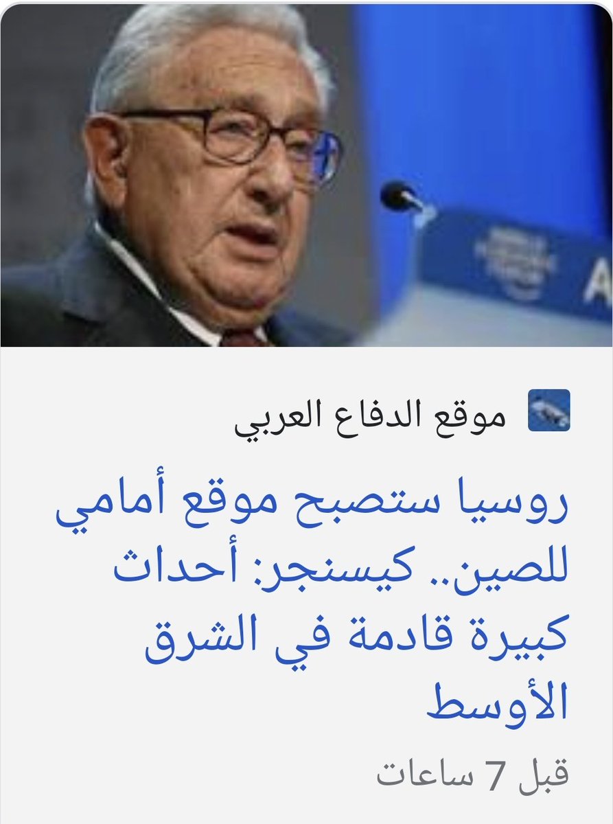 وكان كيسنجر قد تنبأ ب #الحرب_الروسية_الأوكرانية في مقال نشر قبل ثمان سنوات في صحيفة"واشنطن بوست" Washington Post الأميركية وسلطت"فوكس نيوز"الأميركية الضوء على مقاله الذي تنبأ فيه بالحرب وقيام الحرب الباردة نظرا لأن الروس لايحتملون رؤية أوكرانيا مستقلة وتابعة للغرب