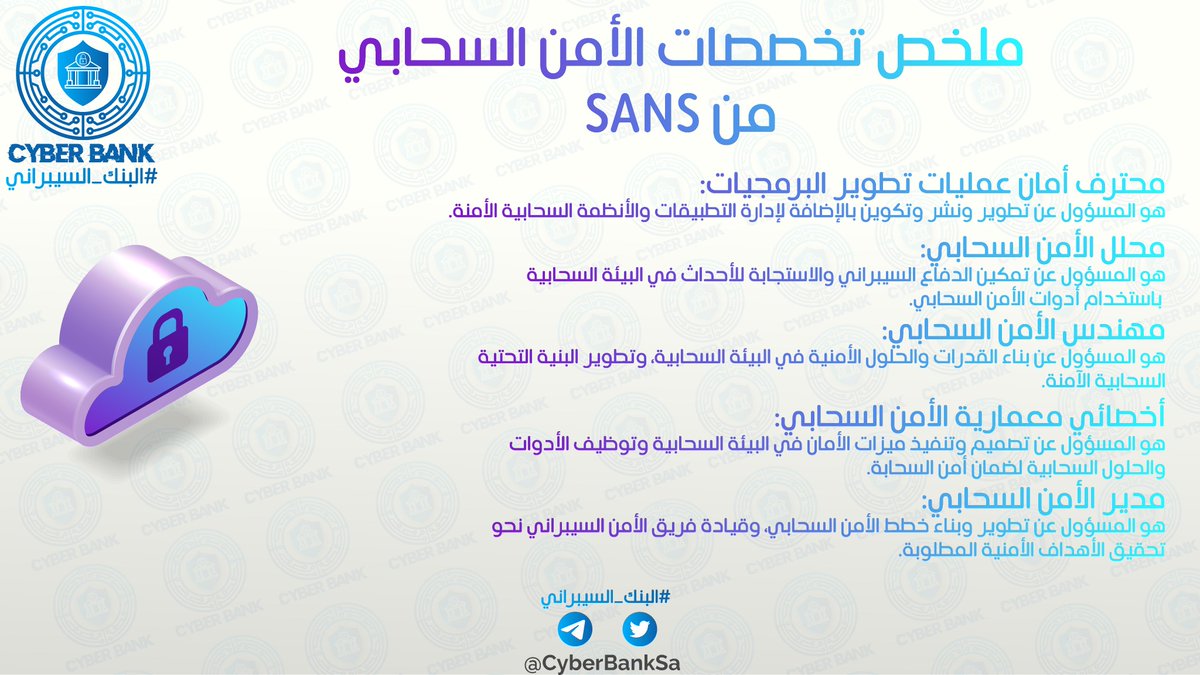 ملخص للأدوار الوظيفية المندرجة تحت #الأمن_السحابي والمعتمدة من معهد SANS .. من تقديم #البنك_السيبراني .