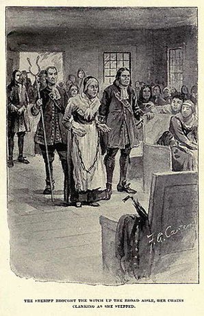 و حين انتهى الأنين أسفل الصخور, أعلن أن المزارع (جايلز كوري) قد نفذ فيه حكم المحكمة, لرفضه الاعتراف بجريمته ...