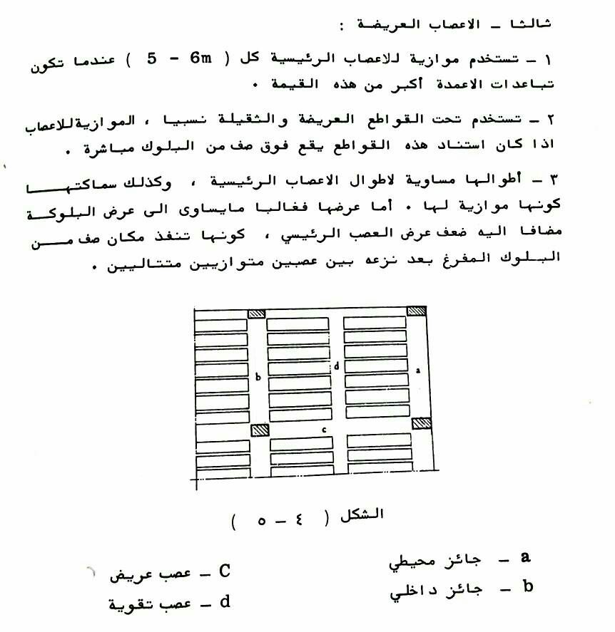 وهناك الكثير من المهندسين يفترضون عرضه بعرض العمود 20 سم او واحيانا عرض عصب فقط وهذا خطاء كبير واحيانا لظروف توزيع البلوك كعدد صحيح من البلوكات قد يزداد عرض الجسر الموازي للاعصاب والرابط بين الاعمدة ليصبح 50 سم و60 سم و 70 سم