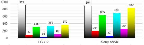 النتيجة بعض المحتويات تكون اعلى سطوع وتشبع الوان من WOLED