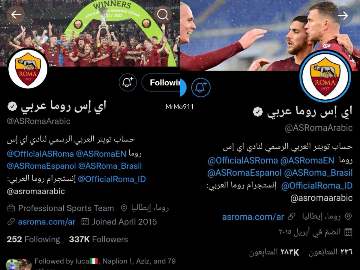 1- المركز الأول كان روما ❤️💛 ولا زال روما 337 ألف متابع بزيادة مقدارها 54 ألف متابع تقريباً