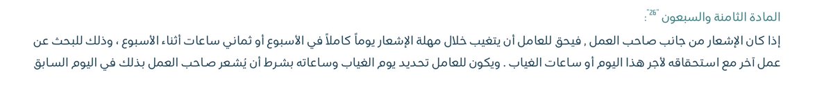 أخيراً: لاتنسي أن العامل لا يمكن فضله دون ٣ مستحقات (إشعار + تعويض + مكافأة).