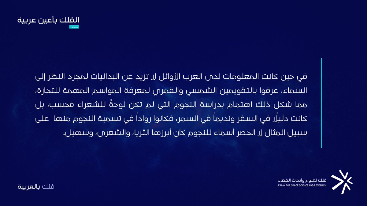بالتزامن مع #يوم_الفضاء_العربي، نستعرض لكم حكايات عربية ممتدة العصور، ما بين العرب الأوائل والعصر الحديث نستذكر أبرز أبرز علمائنا وما توصلوا إليه، بأعينٍ عربية نتحدث، وبمسمياتٍ عربية نفتخر!