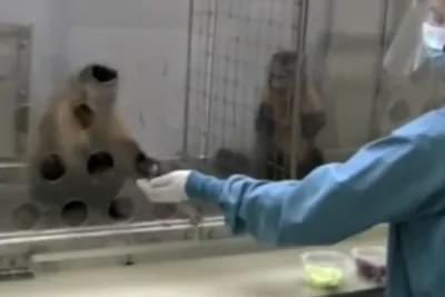 ان قرد بدل ما يدي الباحث عمله لياخذ حبه عنب اقترب من قرده واداها العمله الفضيه