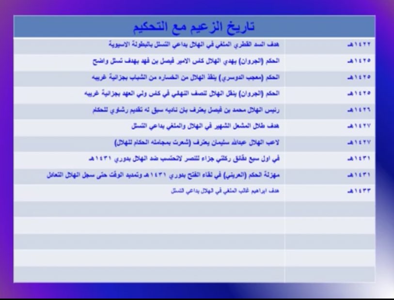 وكذلك مباراة الدور الثاني وما حدث بها من تجاوزات غريبة من الحكم وتلك المباراة الأخيرة لفريق الهلال مع الطائي والتي أحتسب فيها الحكم ( عمر المهنا ) ضربة جزاء غير صحيحة مطلقاً لفريق الهلال ولاعبه ( عبدالرحمن اليوسف ) ، حيث وضعته كبطل للدوري بعد سلسلة من المهازل التحكيمية حدثت