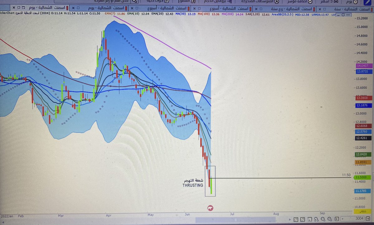 سهم أسمنت الشماليه على اليومي وشمعة التهجم thrusting درس تعليمي