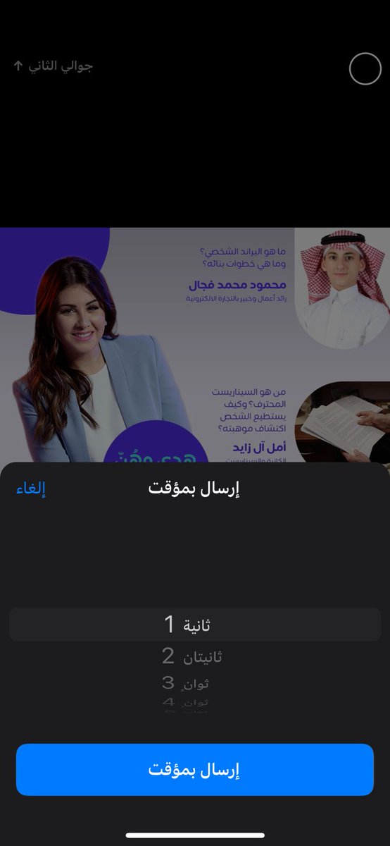 إذا تريد إرسال صورة وتريد المستقبل أن يرى الصورة لمدة ثواني فقط ومن ثم تذهب فيمكنك ذلك ✅