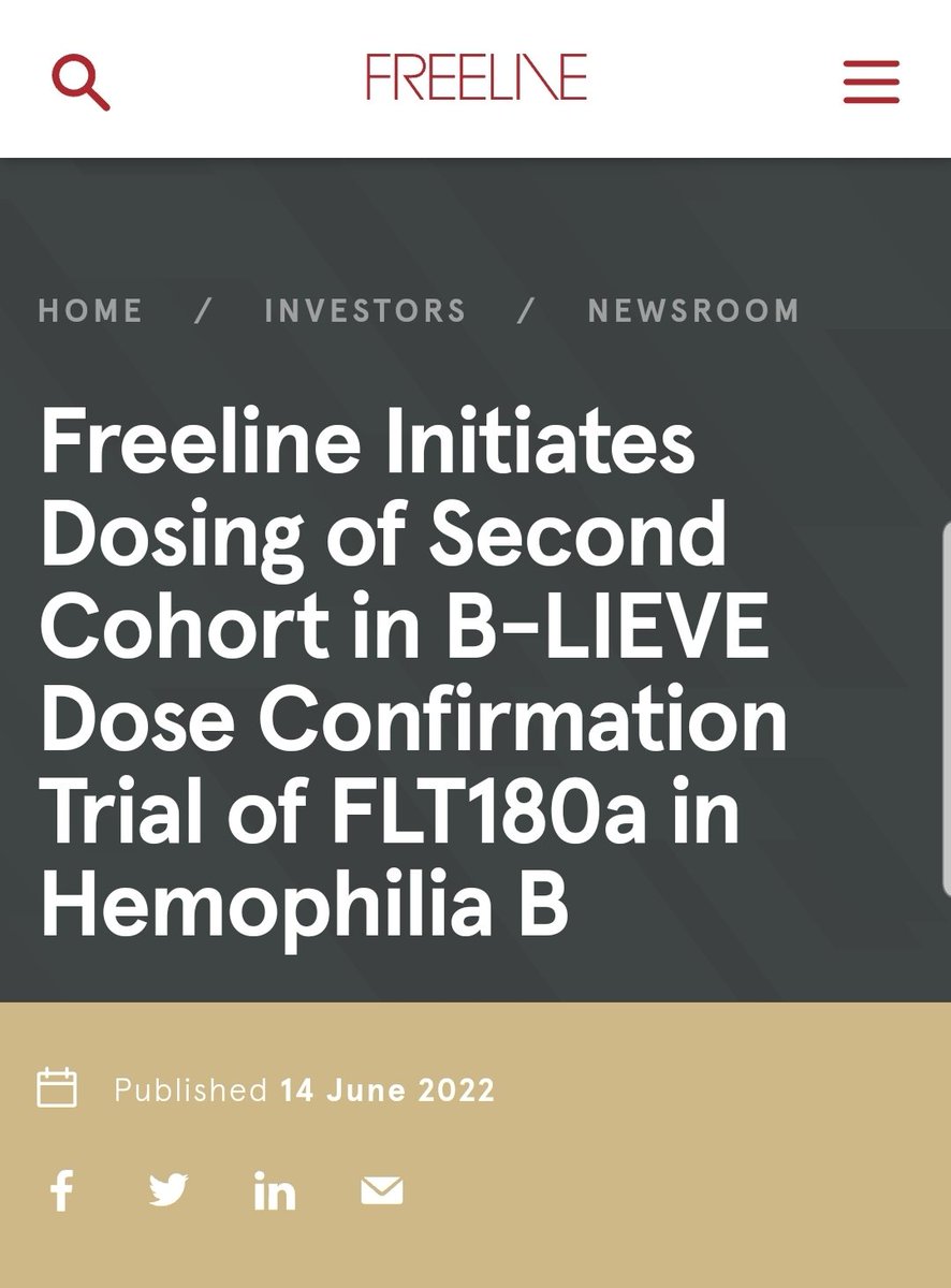 ✅شركة فريلاين @FreelineLife بدأت التجارب الإكلينيكية المرحلة1️⃣للعلاج الجيني التجريبي