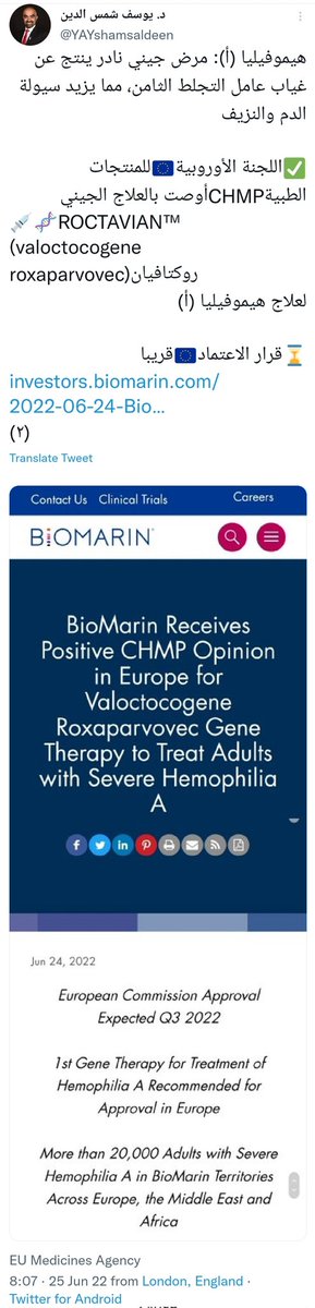✅اللجنة الأوروبية🇪🇺للمنتجات الطبيةCHMPأوصت بالعلاج الجيني