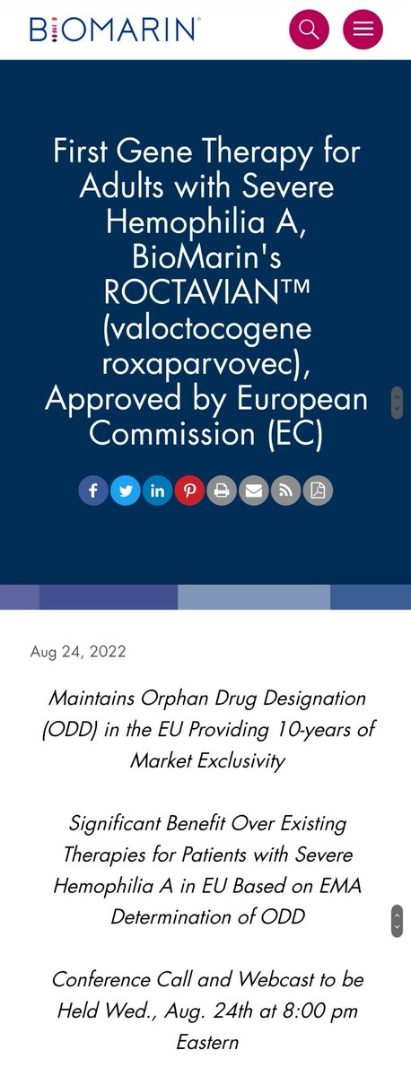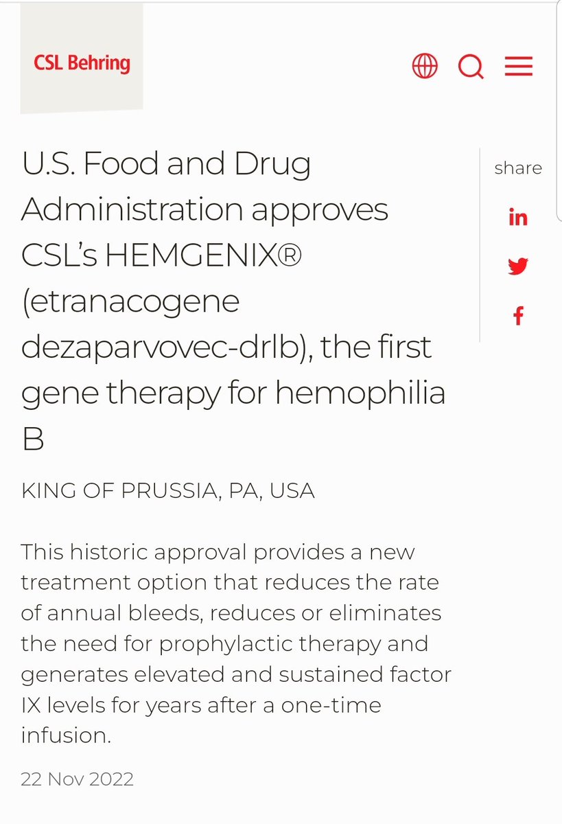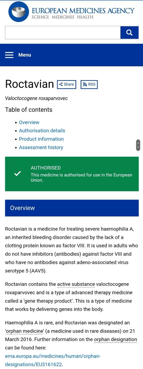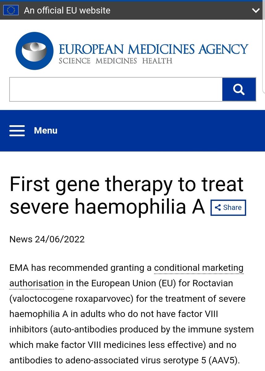 هيئة الدواء الاوروبية @EMA_News منحت الاجازة وفق بند الطوارئ لأول دواء جيني لمرض الهيموفيليا نوع (أ) للحالات الشديدة
