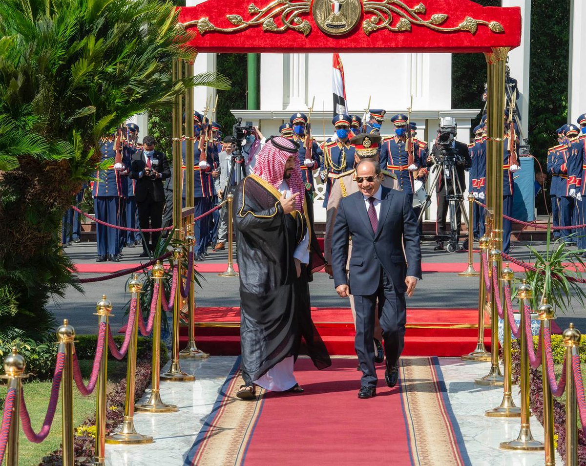 فخامة الرئيس المصري يقيم مراسم استقبال رسمية لسمو #ولي_العهد في قصر الاتحادية بالعاصمة المصرية القاهرة.