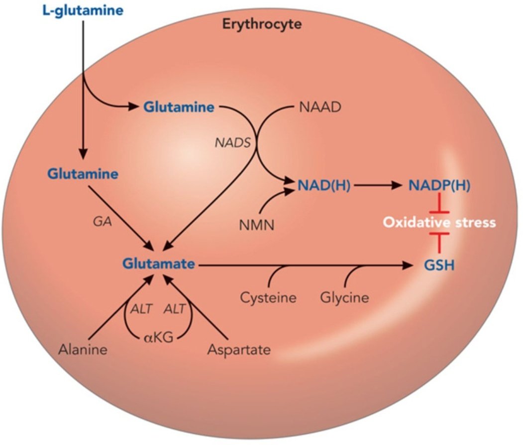 اول تجارب علميه مختبريه واكلينيكيه بدأت في التسعينات الميلاديه على استخدام L_Glutamin على مرض الانيميا المنجليه ،