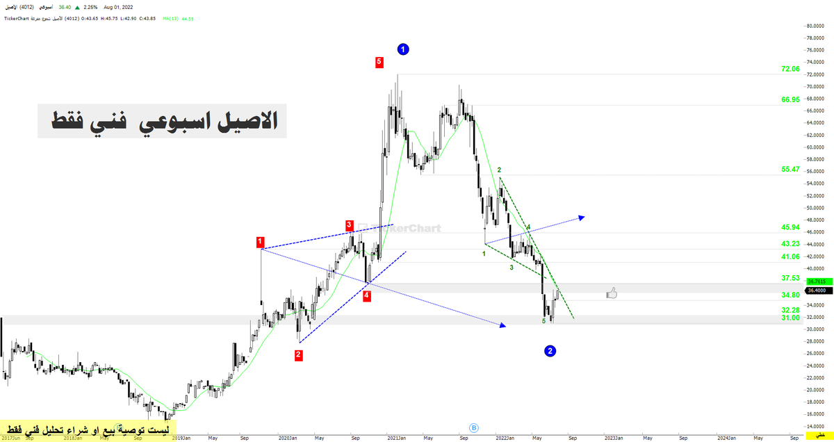 الاصيل ارتد من 31 وصل 36.50 مناطق ترند وقاع سابق 37.50