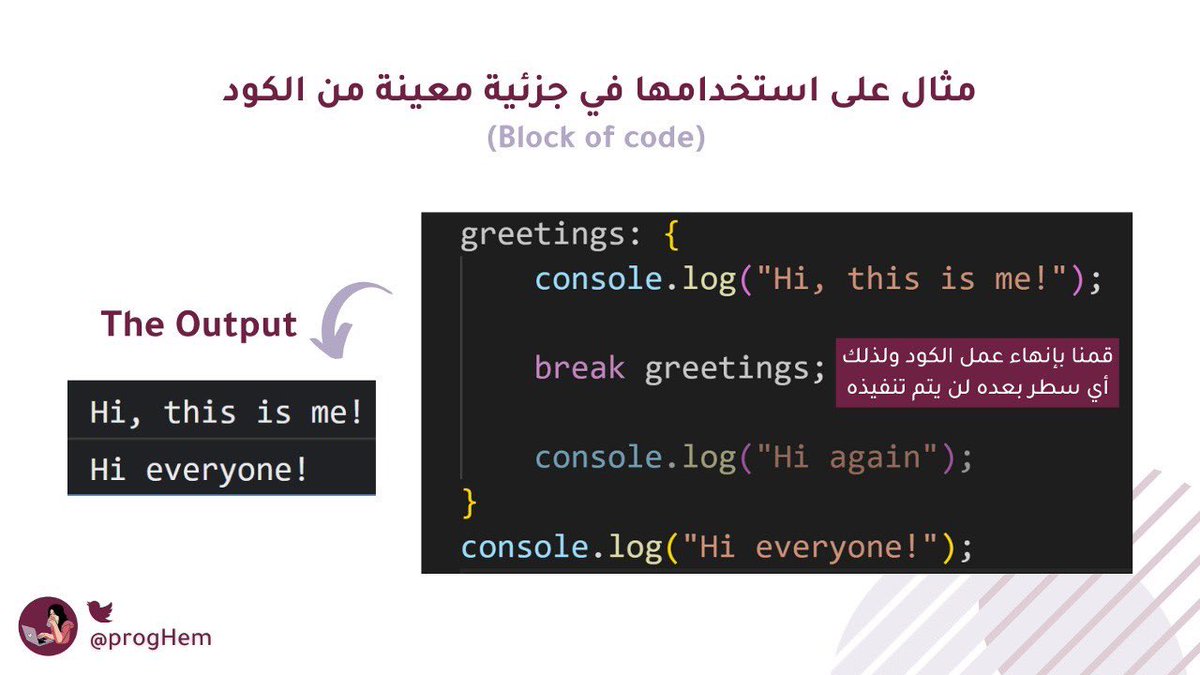 وهي "عبارة" (statement) تتم كتابتها بطريقة معينة نستخدمها حتى نسمّي جزء من الكود (block of code) أو دوال التكرار المتداخلة (Nested loops) و نتحكم فيها ببساطة.✅