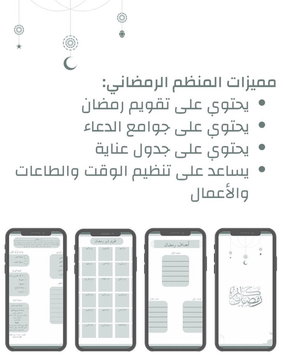 منظمات رمضانية رقمية ، يعني على الجوال ، فيه نوع للأطفال ونوع للكبار ، أعجبني اللي للكبار يحتوي على تقويم رمضان وأدعية وجدول عناية … إلخ حسيتها فكرة حليوة للي يحب هالأشياء