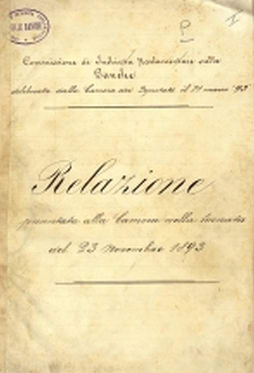 Ho concluso con la commissione parlamentare dei sette saggi, commissione parlamentare d’inchiesta sulla Banca Romana.