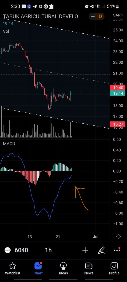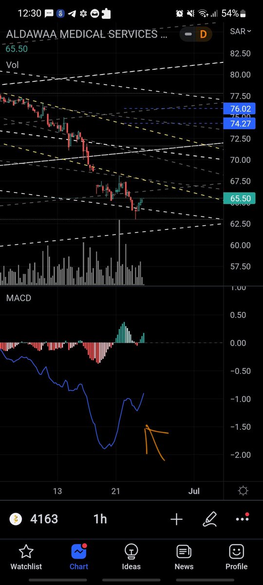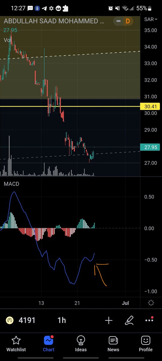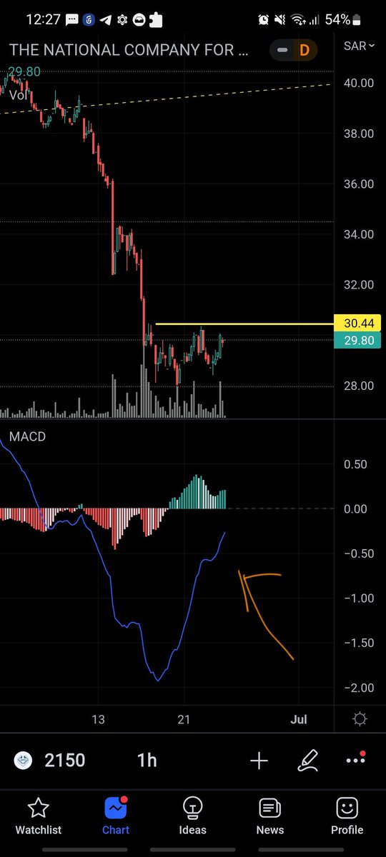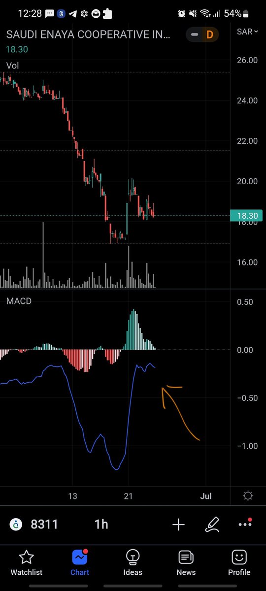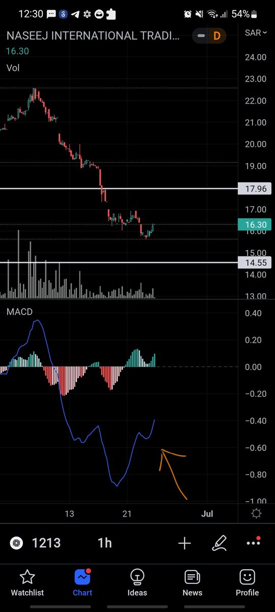 معظم الأسهم في السوق السعودي... ظهرت عليها #عكفة_الماكد على فريم الساعه ... لذا سأعرض بعض منها بقدر المستطاع