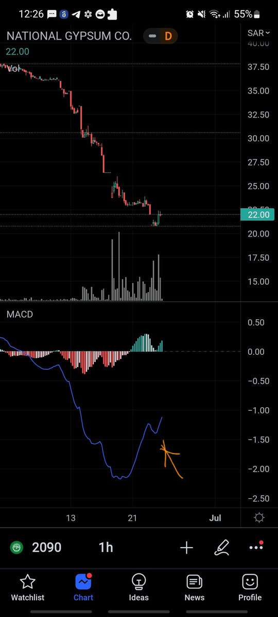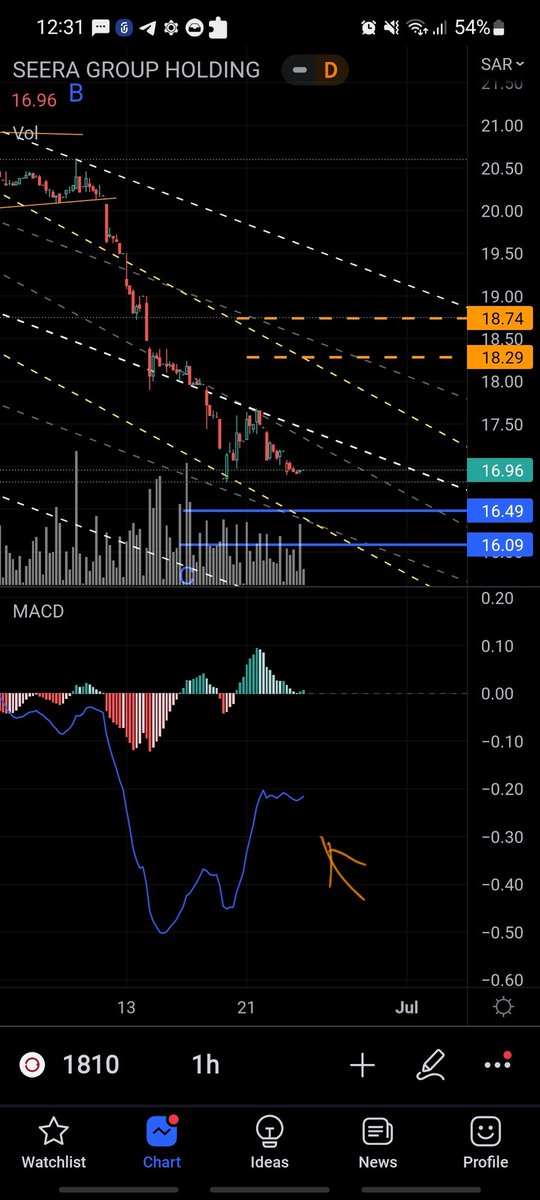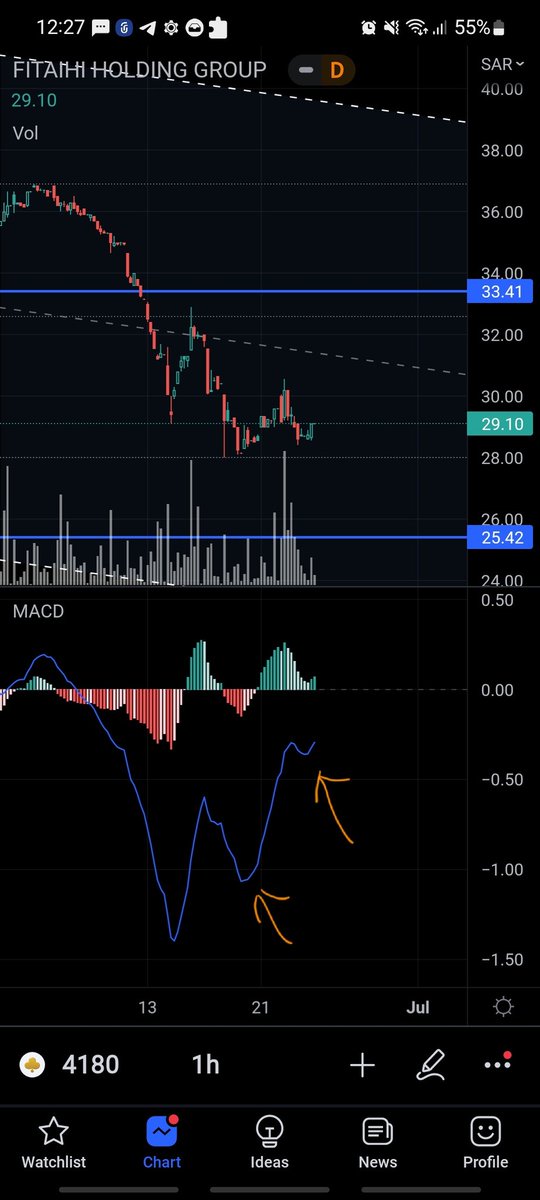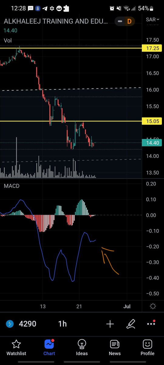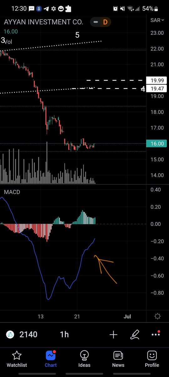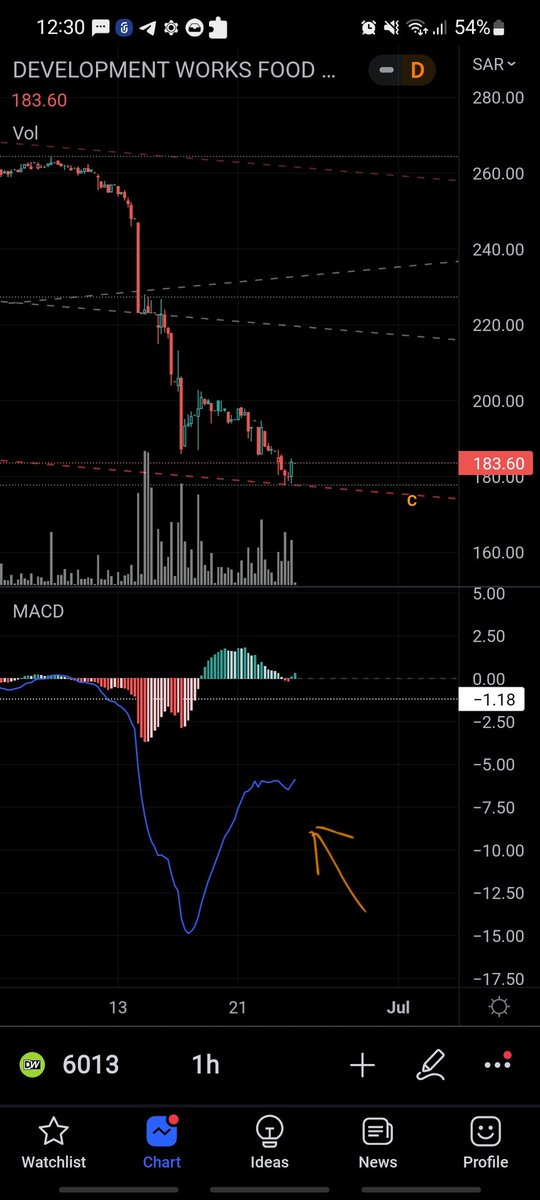 معظم الأسهم في السوق السعودي... ظهرت عليها #عكفة_الماكد على فريم الساعه ... لذا سأعرض بعض منها بقدر المستطاع