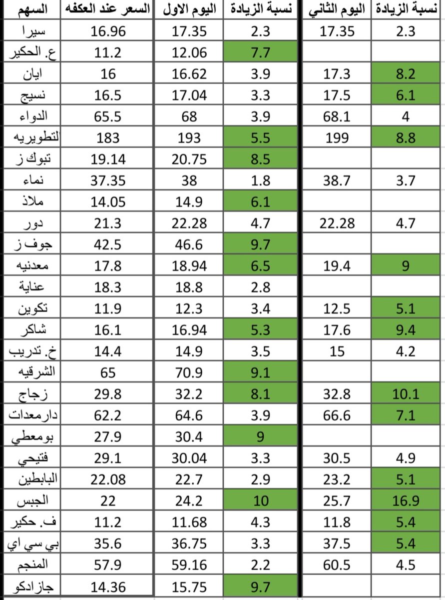 هذي نتائج الأسهم المختارة لطريقة #عكفة_الماكد ... فقط في اليوم الأول