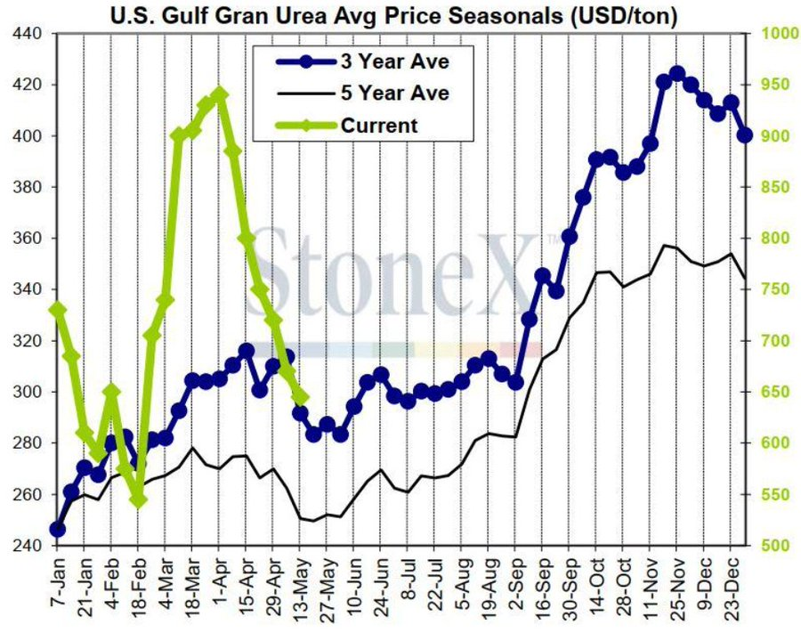 ويلاحظ ان الأسعار الحالية ارتفعت بالتزامن مع ارتفاع اسعار اليوريا الى مستويات تاريخية ثم نزل سعر السهم مع نزول اسعار اليوريا