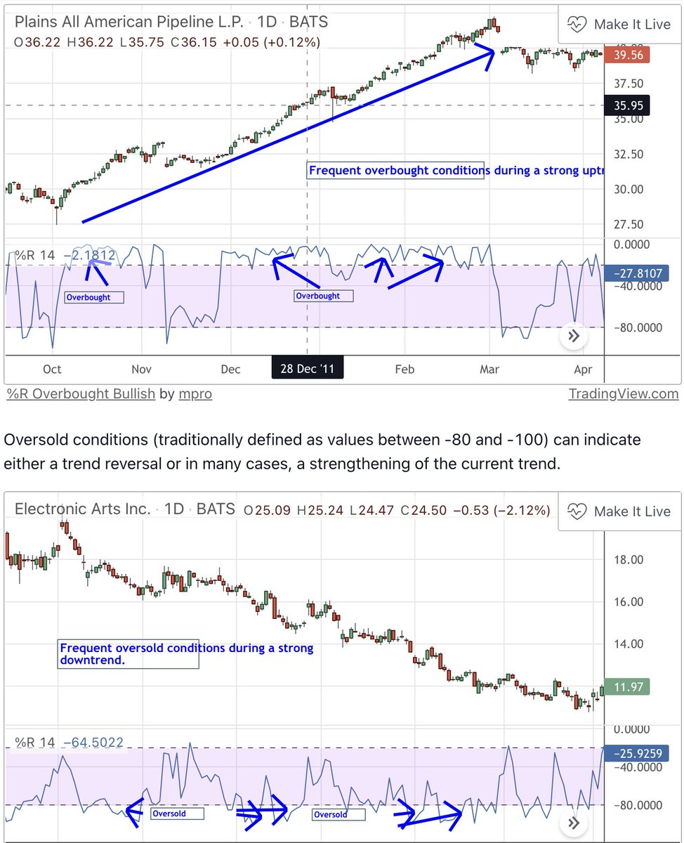 هو مؤشر يستخدم الزخم لقياس ذروة البيع وذرة الشراء، مستنداً على المقارنة بين سعر الاغلاق الحالي واعلى سعر سابق (لفتره يحددها المستخدم) ويتأرجح الناتج بين نسب من 0 الى -100 (قيم سالبه) قراءات اقرب للصفر تعني ذروة شراء وقراءات اقرب لل -100 تعني ذروة بيع