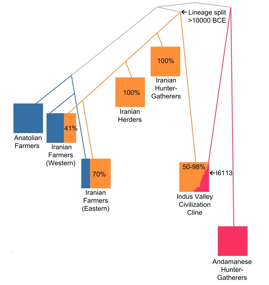 وحوالي %16 من أصول شبيهة بصيادي لاقطي جزر أندامان (الأونج)