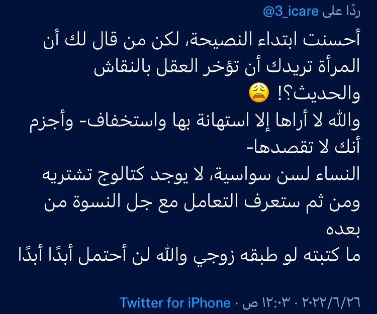 رفقا بالقوارير، ولاتتعامل معهن كتعاملك مع أقرانك وتأخذ كل مايقلن على محمل الجد فتكسرهن.