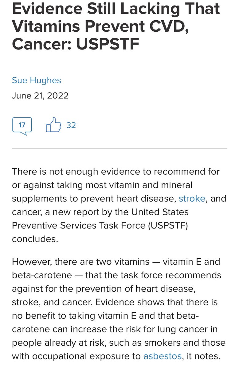 أن #الفيتامينات ليس لها فائدة لمن لانقص عنده وقد تكون ضارة