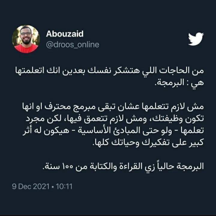 البرمجة لا تقل عن أهمية الطب فى تحسين حياة الناس🤍