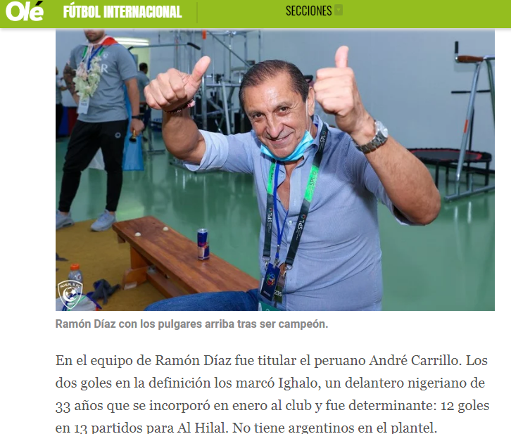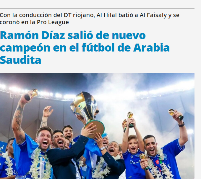 💥💥 صحيفة "pagina12" الأرجنتينية: "بعد الفوز على الفيصلي.. رامون دياز بطلا مرة أخرى في السعودية مع #الهلال".
