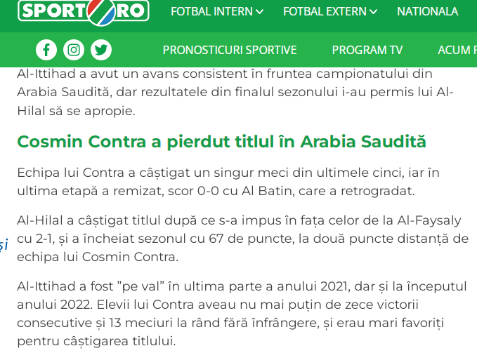 💥💥 صحيفة "sport" الرومانية: "دراما كوزمين كونترا! خسر فريقه #الاتحاد لقب الدوري السعودي.. كان الفريق يتقدم بثبات في البطولة السعودية، لكن النتائج في نهاية الموسم سمحت للهلال بالاقتراب وحصد اللقب للموسم الثالث على التوالي".