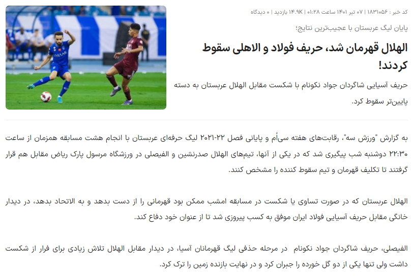 💥💥 صحيفة "esmeraldino" البرازيلية: "ميشيل يتألق بتمريرتين جميلتين و #الهلال هو بطل السعودية. فاز اللاعب بأول لقب له منذ ترك كرة القدم البرازيلية. كان ميشيل أساسيا في ليلة تتويج الهلال بلقب الدوري السعودي للعام الثالث على التوالي بعد الفوز 2-1 على الفيصلي".