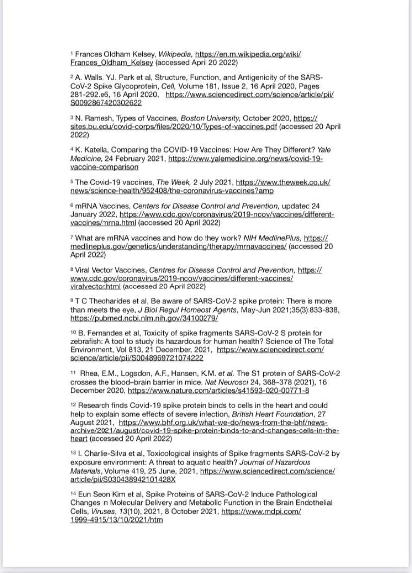 2) لسوء الحظ ، نحن نعلم الآن أن بروتين سبايك ليس حميدًا. يسبب بعض أسوأ أعراض مرض كوفيد -19. بروتين سبايك مادة سامة ، واللقاحات تعلم أجسامنا كيفية صنعه .(5 ،9، 10 ،11، 12، 13، 14، 15، 16، 17)