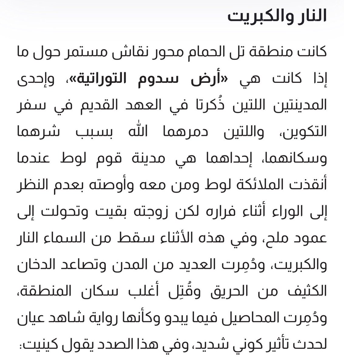 @aladwani585 اذا من الواضح ان ما حدث لقوم لوط ينطبق بشكل كبير مع ما تم اكتشافه من اثار سواء المقذوفات او الذي تكون على الارض بفعل هذه الحادثة غير العادية