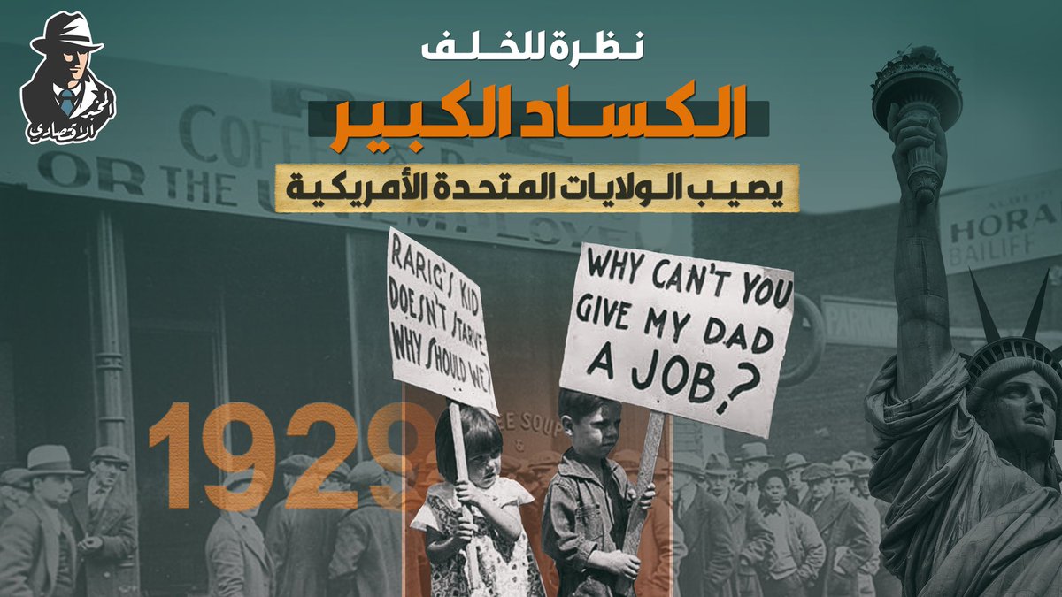 📌تعرضت الولايات المتحدة الأمريكية عام 1929م لكساد اقتصادي سمي "الكساد الكبير" واستمر لما يقرب من عشر سنوات.