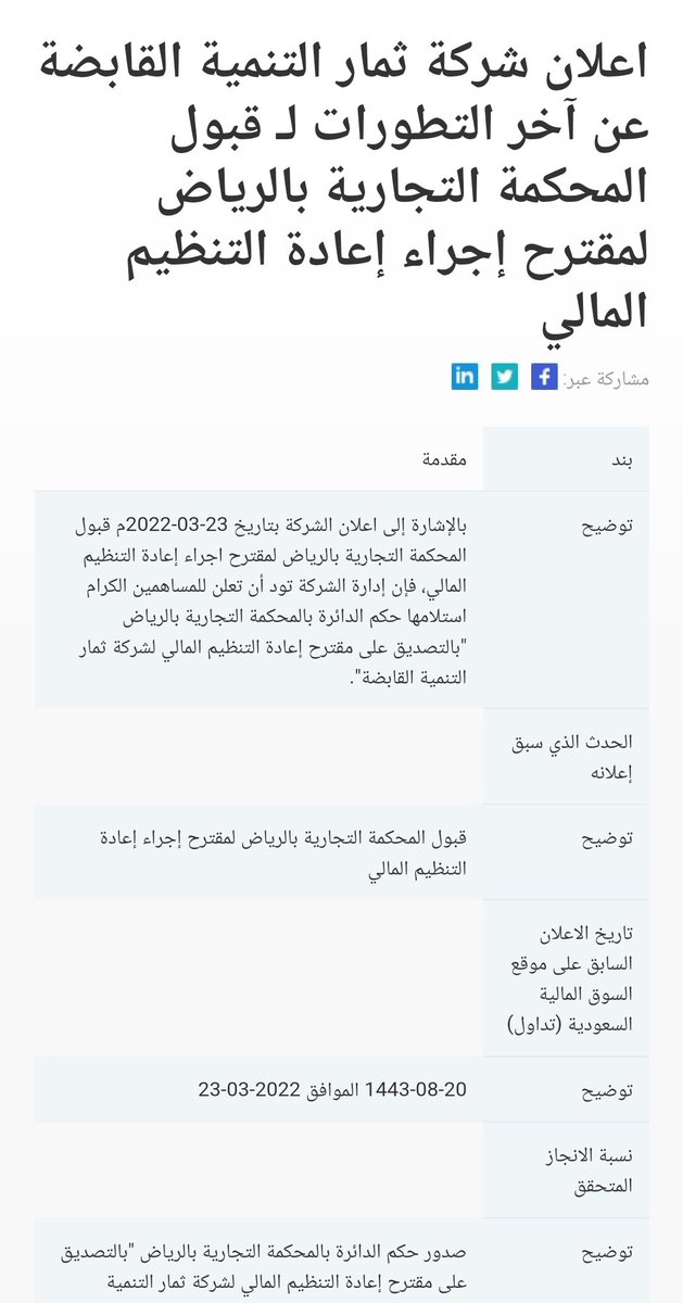 واخيراَ بعد التداول ظهرت النتائج السنوية وتجاوزت خسائرها أكثر من 100% من رأس مال الشركة