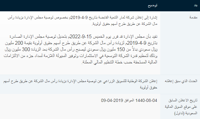 ولكن مثل ماتشاهدون في التغريدة السابقة لديها لدى هيئة سوق المال لزيادة رأس المال من خلال حقوق أولوية