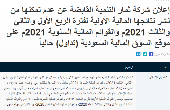 وايضاَ تحتاج للأعلان عن النتائج حتى نهاية الربع الأول 2022
