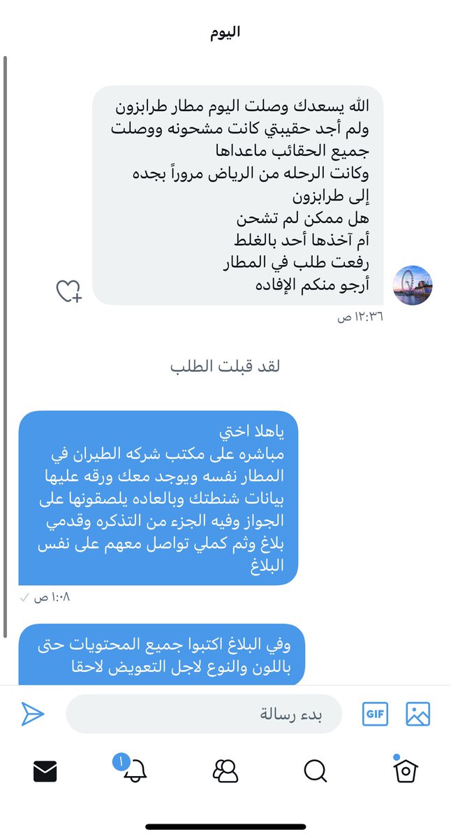 المهم اطلب الرقم الموجعي وكيف تتبع حاله فقدانك للشنطة من مكتب المطار