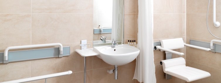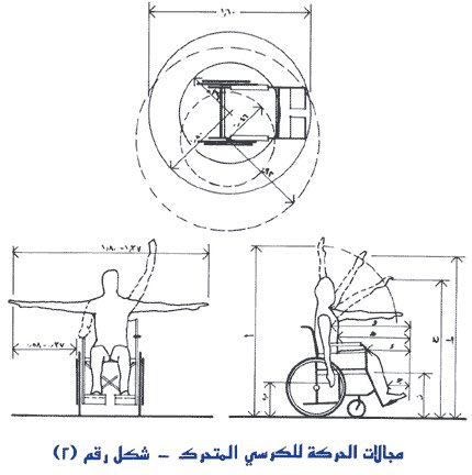 -أن تسمح أبعاد الحمام بدخوله بعربته وإغلاق الباب والانتقال بسهولة للكرسي(الأبعاد موضحة بالصورة)