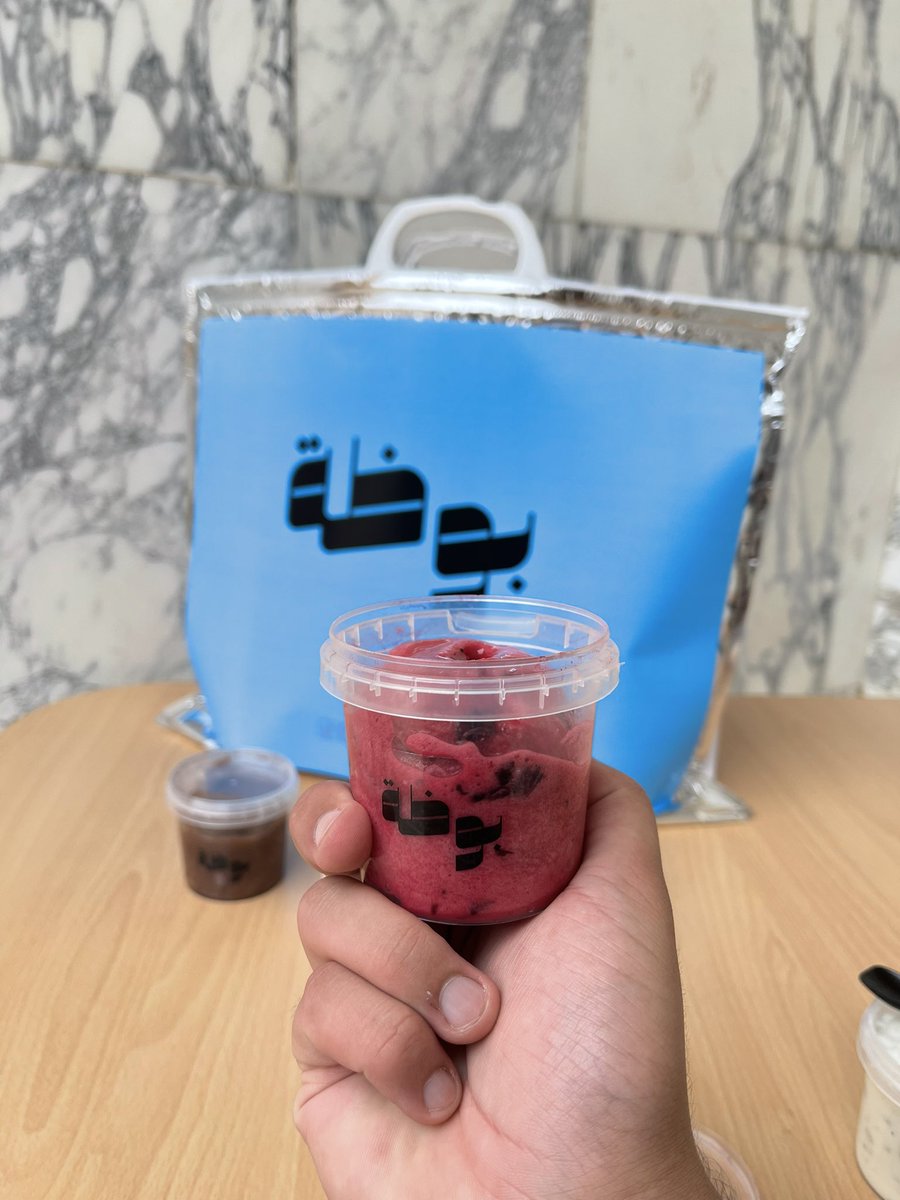 يقدم خمس انواع من البوظه بكيس حافظ للبروده وبداخلها ثلج عشان توصلك باعلى مستويات البروده .. اعجبني المانجا والتوت مره جميله ومنعشه .. اطلبوها من تطبيقات التوصيل 💙🚙
