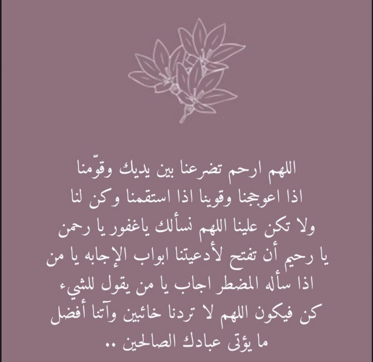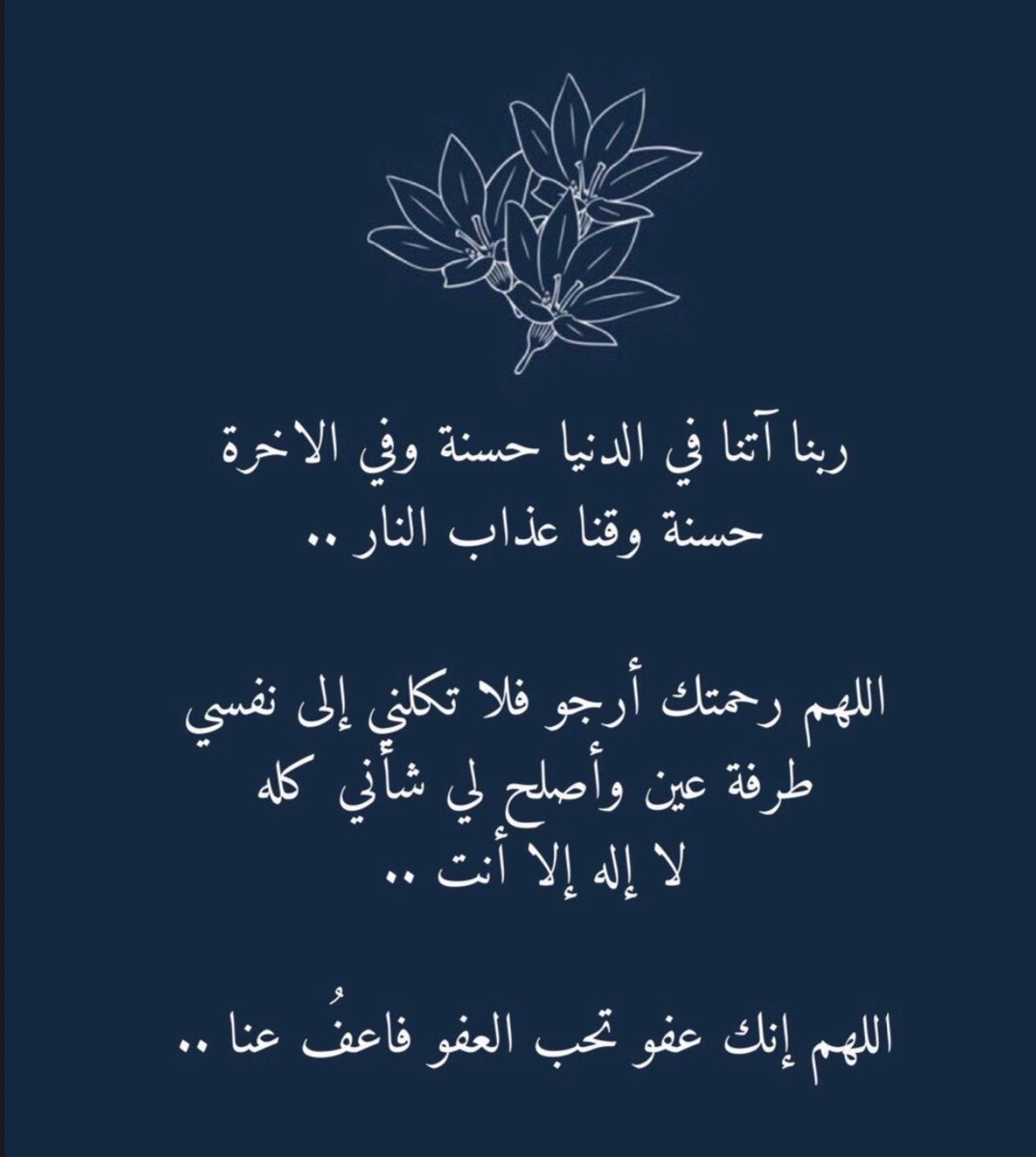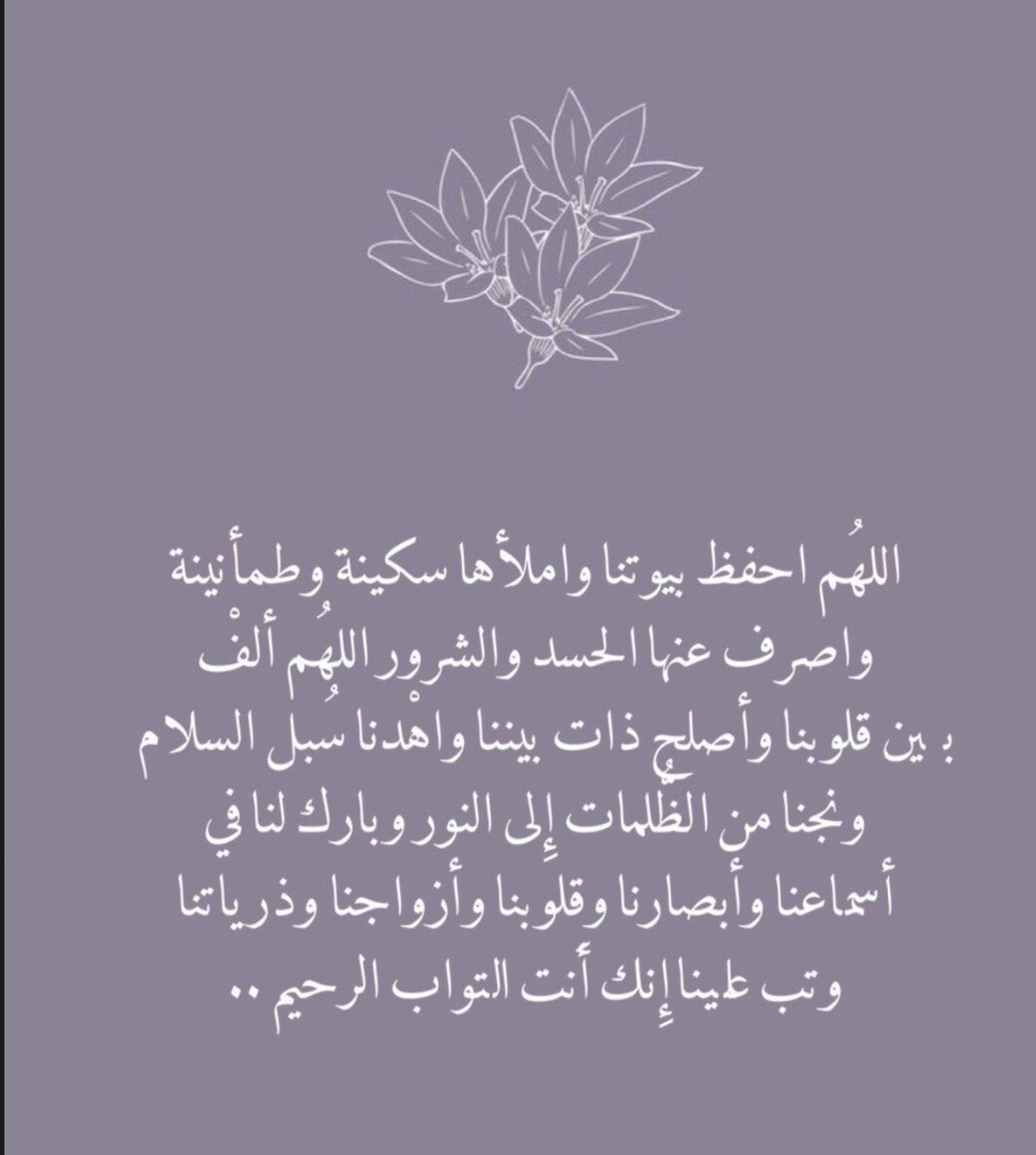 "اللهم إنا نسألك برحمتك التي وسعت كل شيء أن تغفر لنا ذنوبنا، وأن تُكفّر عنا سيئاتنا، وأن تتولى أمرنا، وأن تختم بالباقيات الصالحات أعمالنا، يا مُفرّج الكروب فرّج كربنا، واغفر ذنبنا، واستر عيبنا، وأدخلنا برحمتك في عبادك الصالحين".❤️❤️