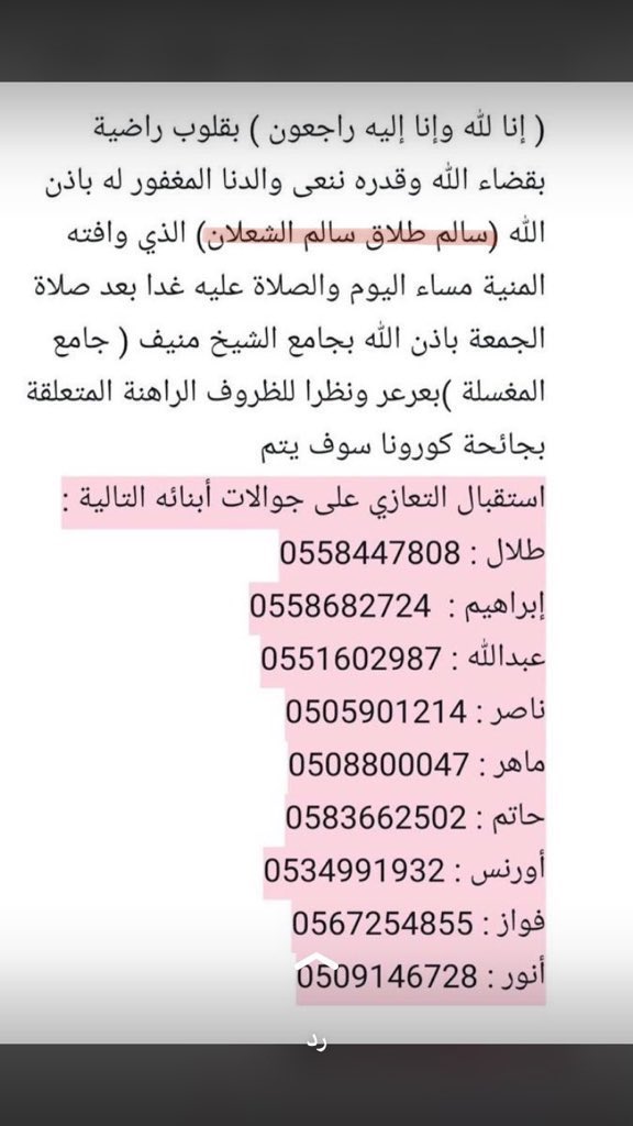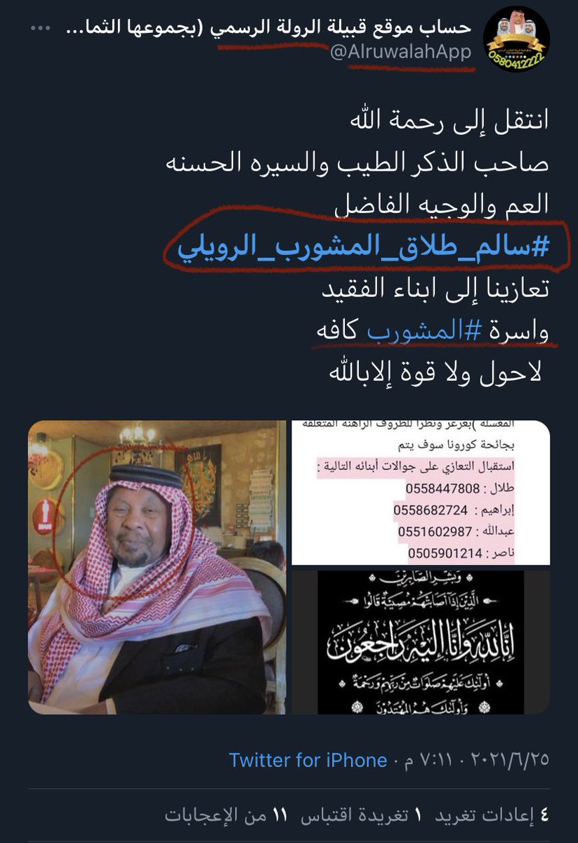 واحفاد العبد المشورب كما ذكرت فهم من #الشعلان من المرعض من #الروله بشهادة حساب الروله الرسمي باشراف من الاميران/نايف وسعود.. بتعزيتهم لعمهم سالم طلاق المشورب الشعلان الرويلي