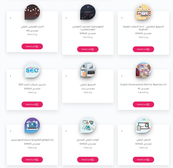 ثانيا: تطبيق وموقع يسمى إدراك استفدت منها كثيرًا جدا .. بإمكانك أن تسجل عليه حساب ثم تبحث عن دورات التسويق الرقمي وستجد وهي غاية في الروعة والبساطة✅️.