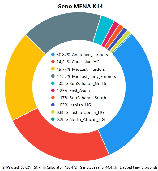 أما فيما يخص تصدر نسب المكونات الأناضولية والقوقازية بعينة تشايونو cay007