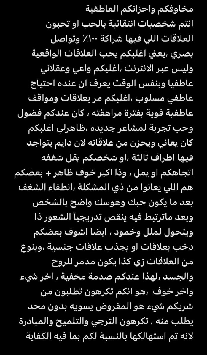 •كشف روحي وعاطفي لكم ،افكار اللاوعي والوعي ، احزانكم ومخاوفكم بالحب ،مواصفات شريكم العاطفي او الشخص اللي تملكون له مشاعر ،طاقته ،القادم لكم معه •