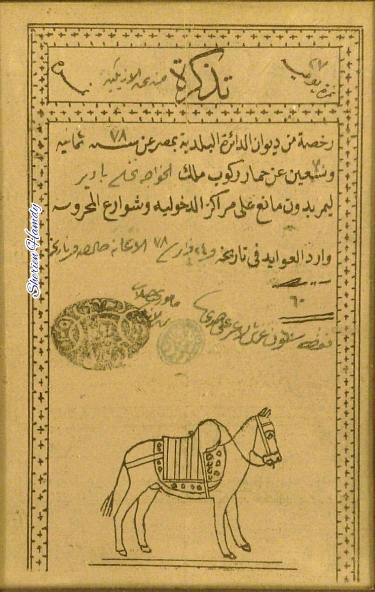 ودي صورة أقدم رخصة حمار فى مصر سنة ١٨٧٢م ليمر بدون مانع 👇